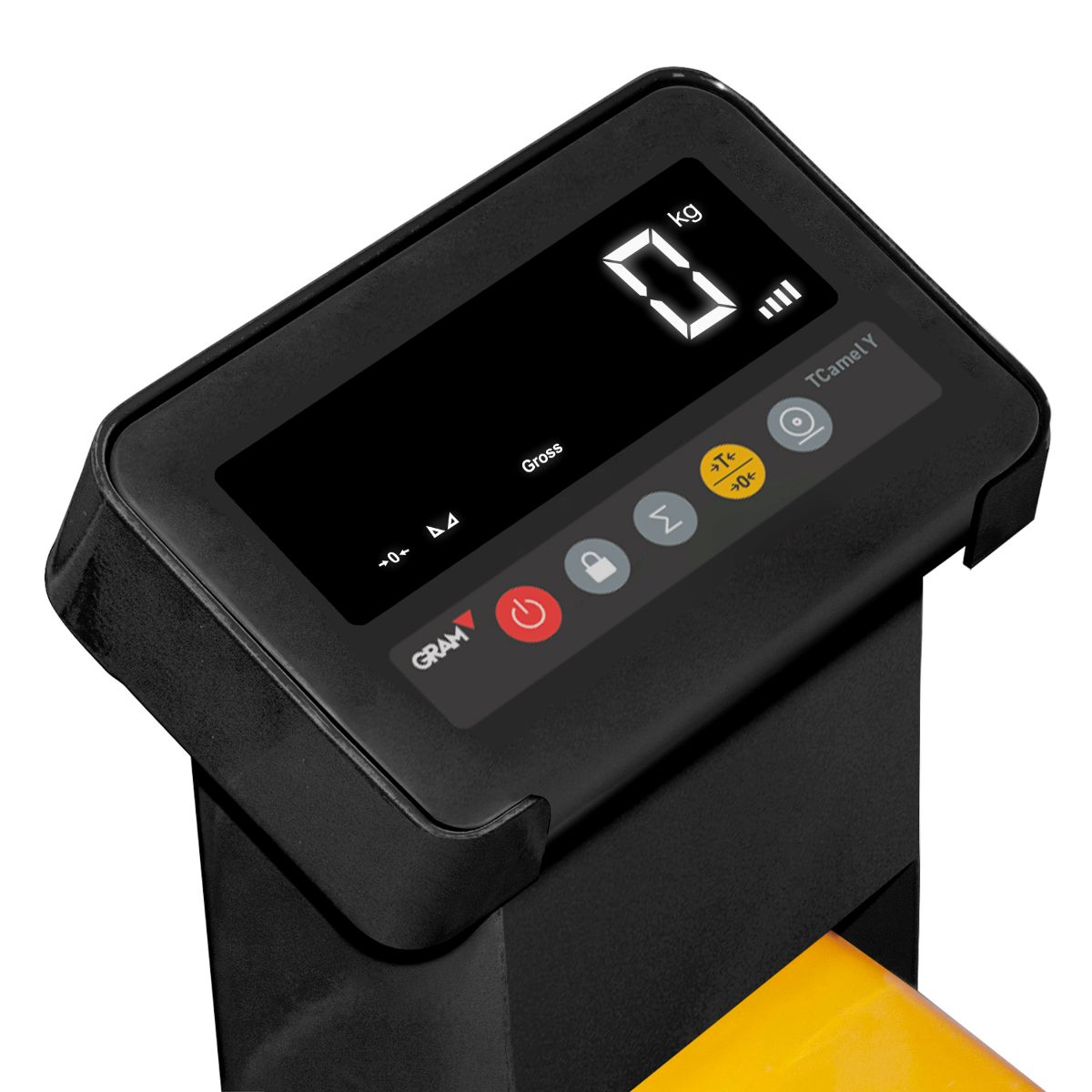 Paletový vozík s váhou TCamel-Y vo váživosti do 2t a presnosťou na 1kg. Indikátor s  LED displejom umožňuje optimálne čítanie hmotnosti z displeja vo všetkých svetelných podmienkach. Napájanie váhy na nabíjateľný akumulátor.