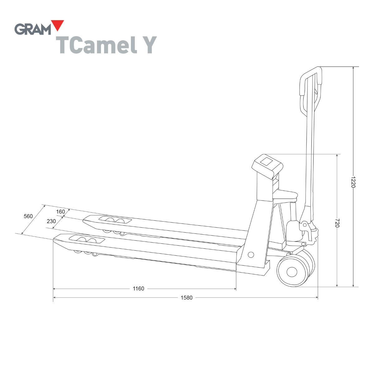 Konštrukcia paletového vozíka TCamel Y  je vyrobená z odolnej ocele, navrhnutej pre intenzívne každodenné používanie. Polyuretánové kolieska zabezpečujú plynulý pohyb, dobrú stabilitu a tichú manipuláciu aj pri maximálnom zaťažení. Rozmery vidlíc 1160 × 560 mm sú vhodné pre štandardné europalety.