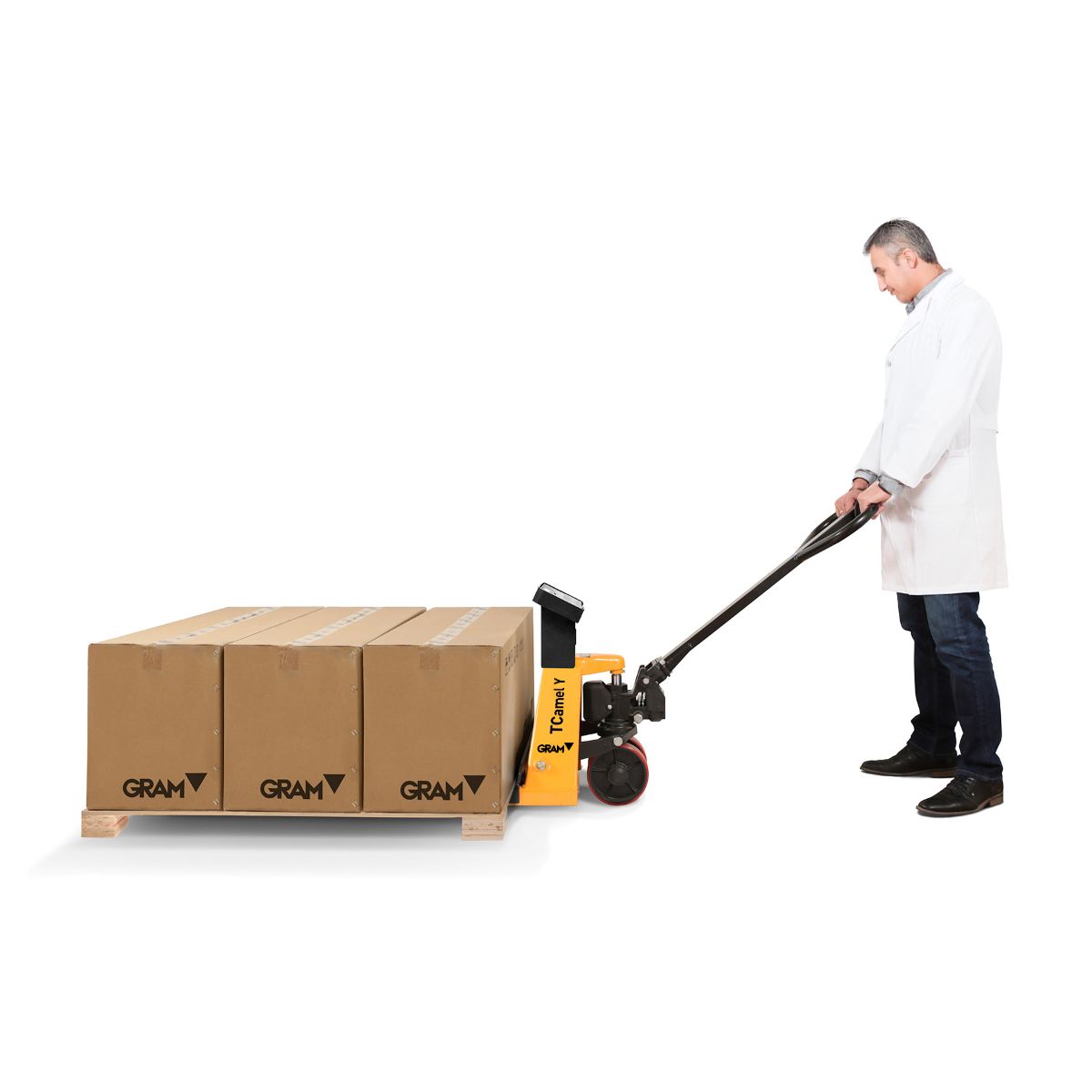 Paletový vozík s váhou TCamel Y 2T umožňuje váženie paliet súčasne s ich zdvíhaním a presunom, bez dodatočnej manipulácie s tovarom. Váženie je určené na technologické (neobchodné) účely, napríklad na kontrolu hmotnosti pri príjme tovaru, internú evidenciu, expedíciu alebo optimalizáciu skladových tokov. Výsledky váženia sú k dispozícii okamžite, priamo počas práce.