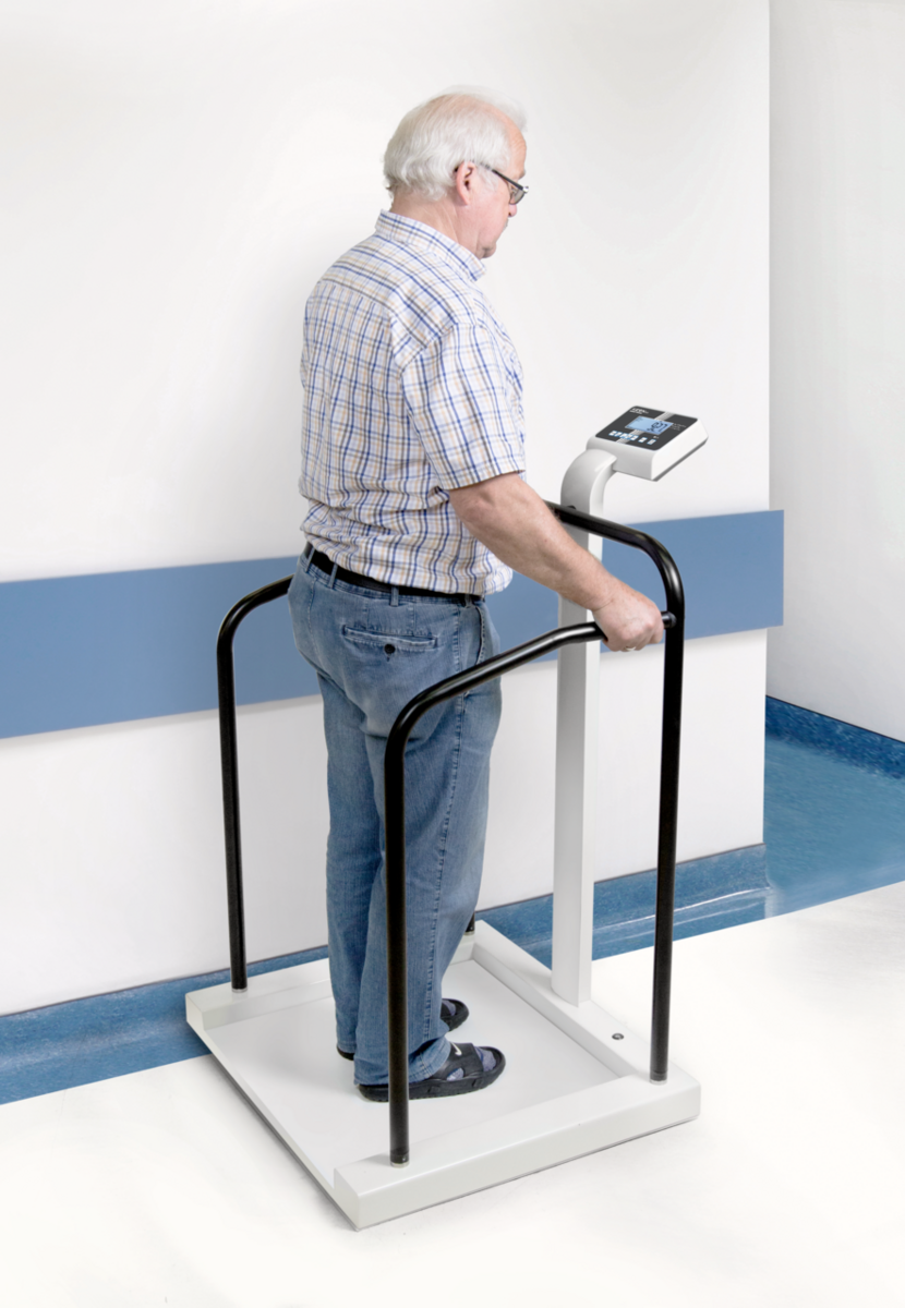 Dominantným prvkom váhy je pevná oceľová konštrukcia s obojstrannými madlami, ktoré poskytujú pacientovi istotu a stabilitu pri nastupovaní aj počas samotného váženia. Nízka nástupná výška platformy iba 30 mm uľahčuje prístup aj menej pohyblivým osobám.